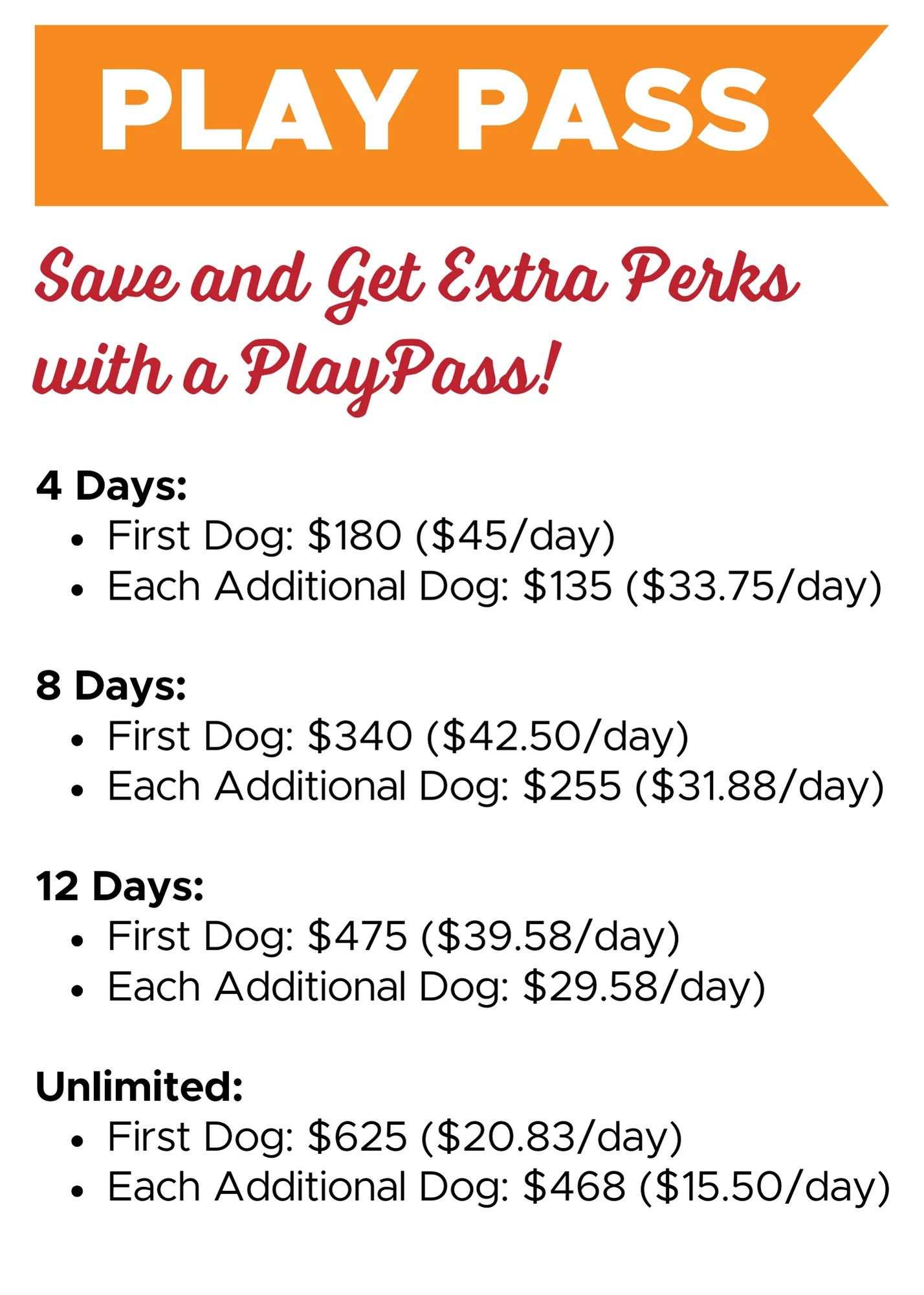 Schedule a VIP assessment! We want to make sure you pup is set up for success with our VIP program, so we ask that you schedule a day ahead of time to drop of your dog for us to assess. If the assessment goes well, you can then make VIP daycare and boarding reservations. There are a limited number of VIP spots each day, so RESERVATIONS ARE ALWAYS REQUIRED! Remember, staff retains the right to deny a dog access to the program if there is a concern for staff or the dog’s safety and wellbeing.